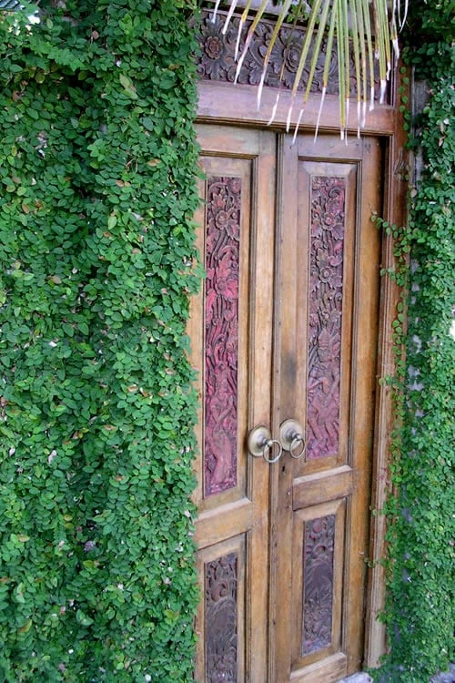 Creeping Fig is an evergreen vining plant that as a groundcover will quickly fill a space, but is most often used as an enthusiastic climber able to scramble up and cling to brick, stone or stucco walls, capable of climbing up to 3 to 4 stories tall! This vine coats and turns surface into “living walls” with a tracery of fine stems that are densely covered with highly attractive, small, heart shaped leaves about 1 inch long by about .75 in wide. They foliage is held closely to the surface creating a mat of foliage that extends barely 1 inch out. If you’ve ever visited Charleston, South Carolina, you’ll see a LOT of Creeping Fig covering walls on seaside homes.
