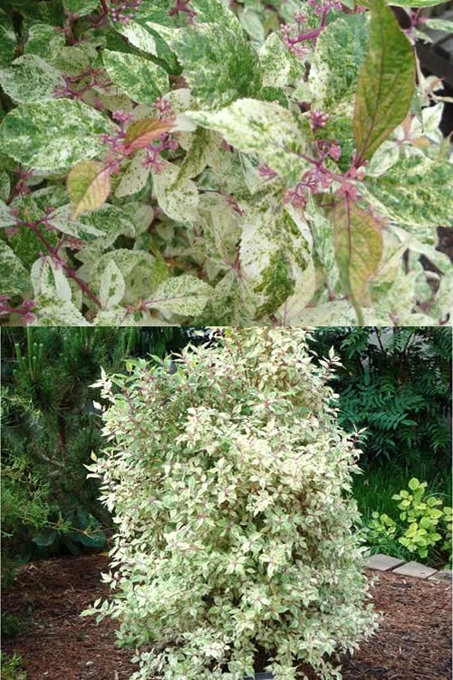 Wine Spritzer Beautyberry, Beautyberry Bush, Japanese Beautyberry, Beautyberry, Beauty Berry, Callicarpa Dichotoma, Bird Shrubs, Flowering Shrubs, Berry Shrubs, white leaves, white foliage, pink flowers, lavender flowers, flowering shrubs, colorful shrubs, white shrubs, shrubs with white leaves, shrubs with white foliage